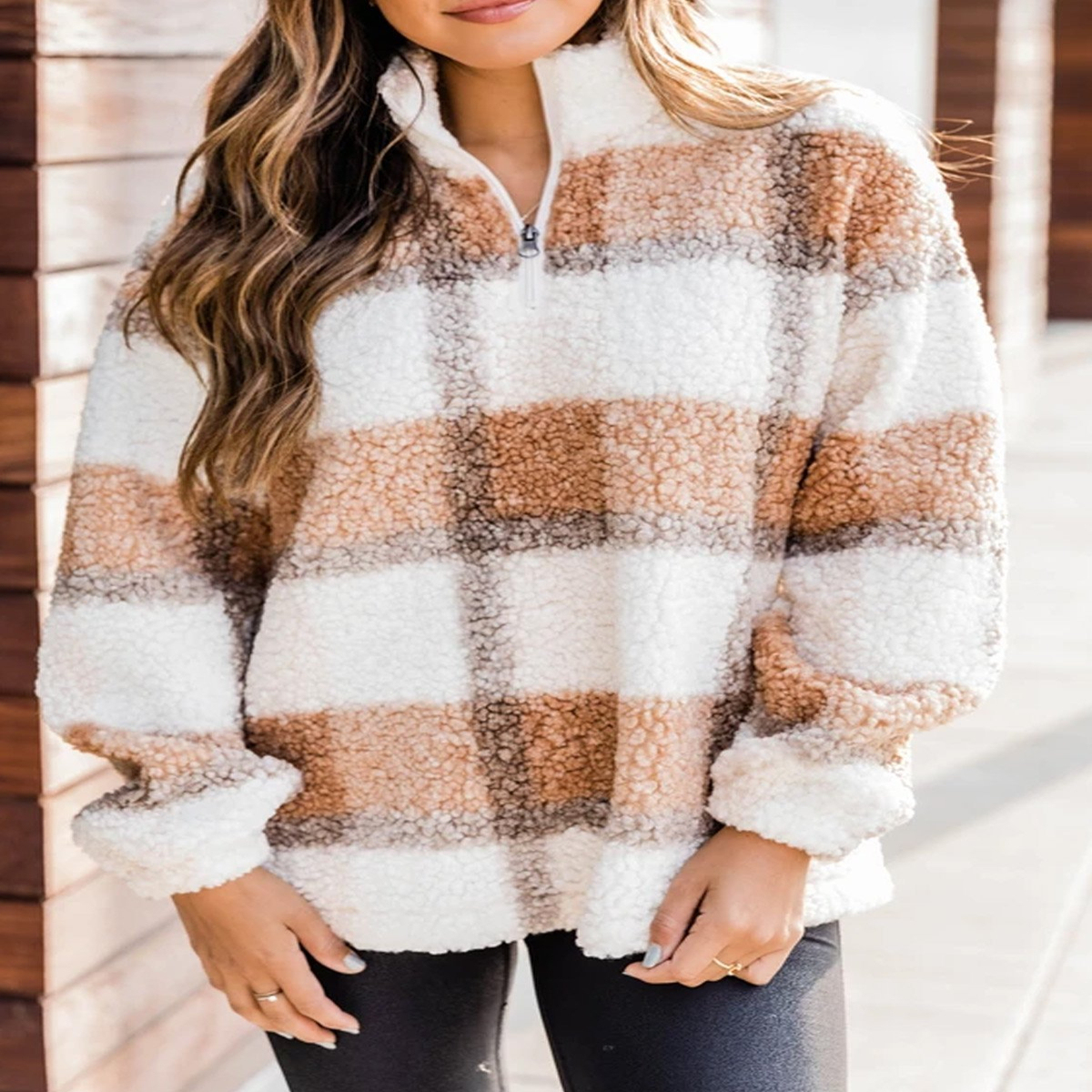 Thickened Plush Long-Sleeved Zipper Pullover Stand-Up Collar Sweater