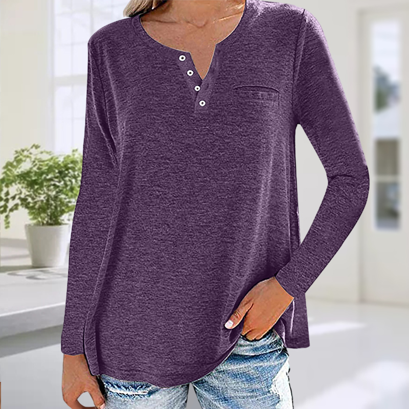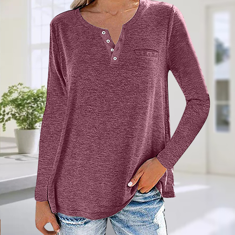 V-neck Solid Color Long-Sleeved Casual T-shirt