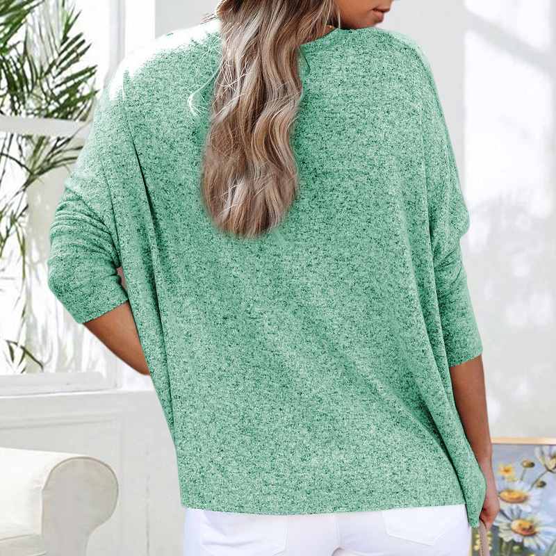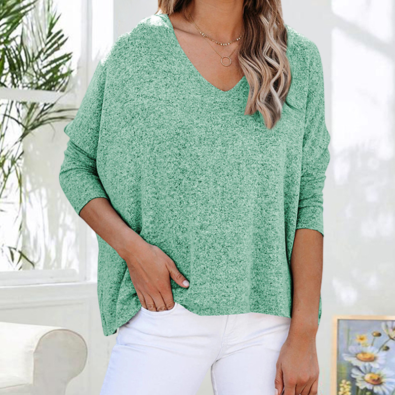 V-neck Solid Color Loose Long-Sleeved T-shirt
