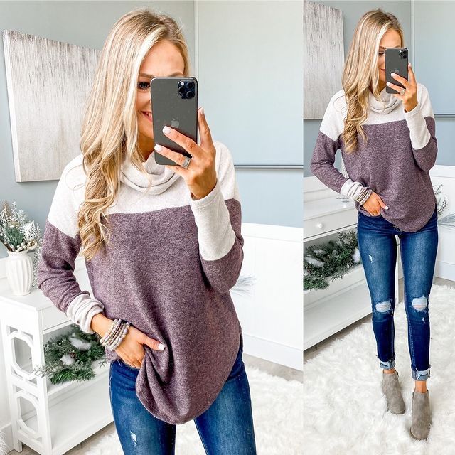 Collision Color Wool Fleece Drop Shoulder Long Sleeve Top