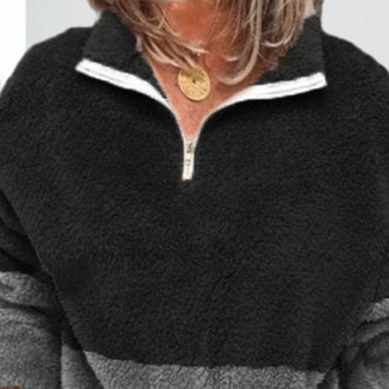 Thickened Plush Long-Sleeved Zipper Pullover Stand-Up Collar Sweater