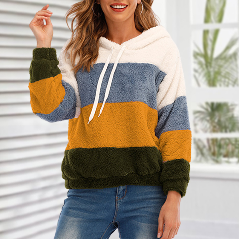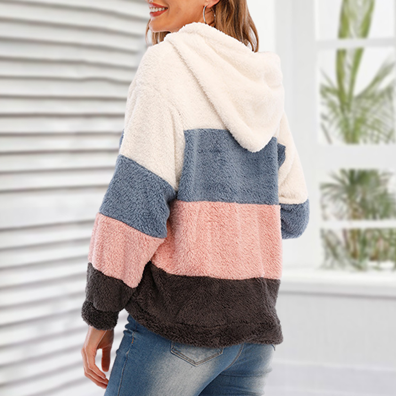 Color Blocking Drawstring Hooded Fleece Sweatshirt