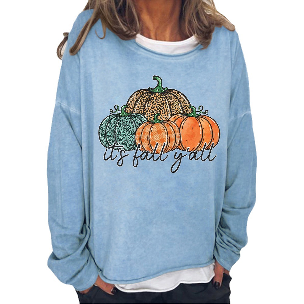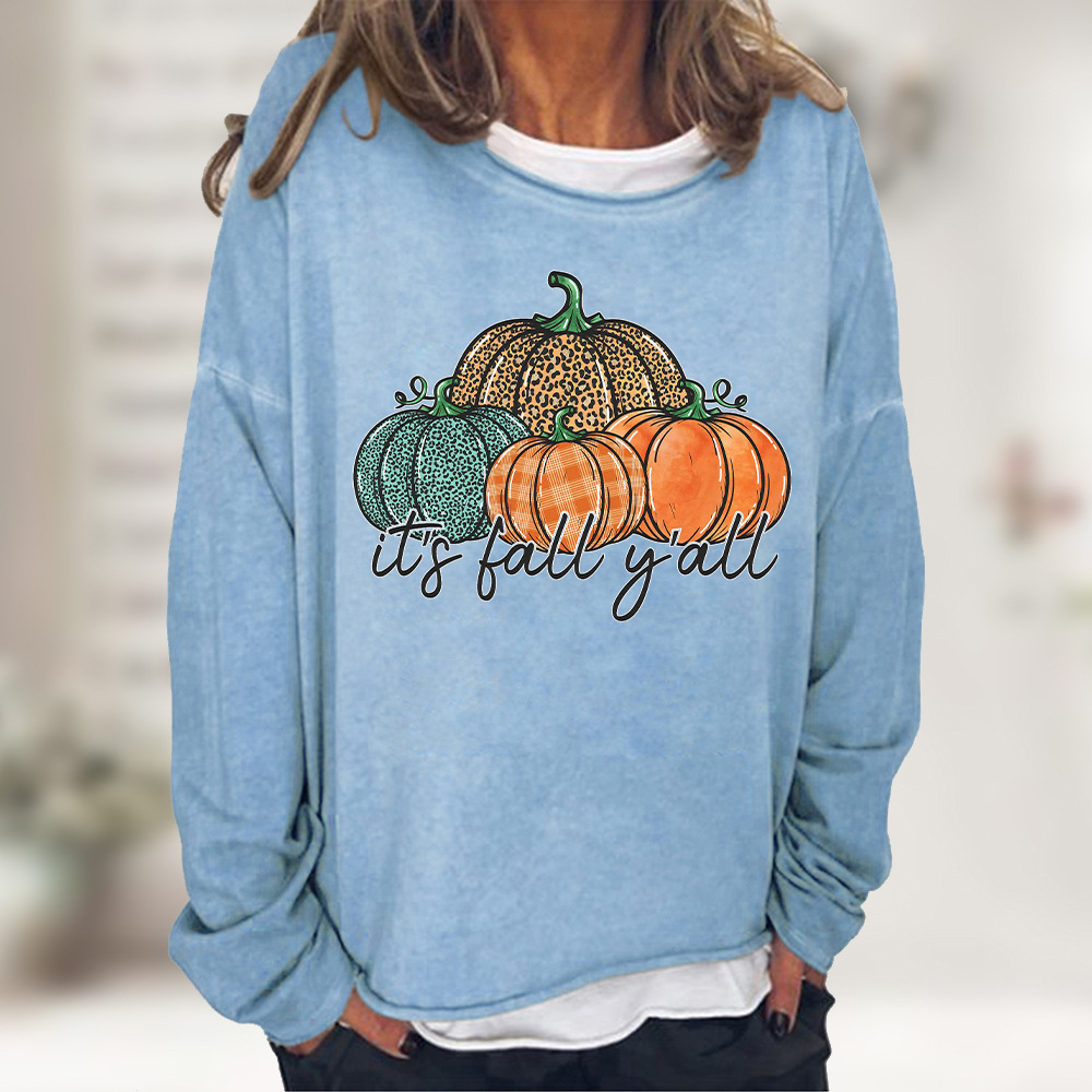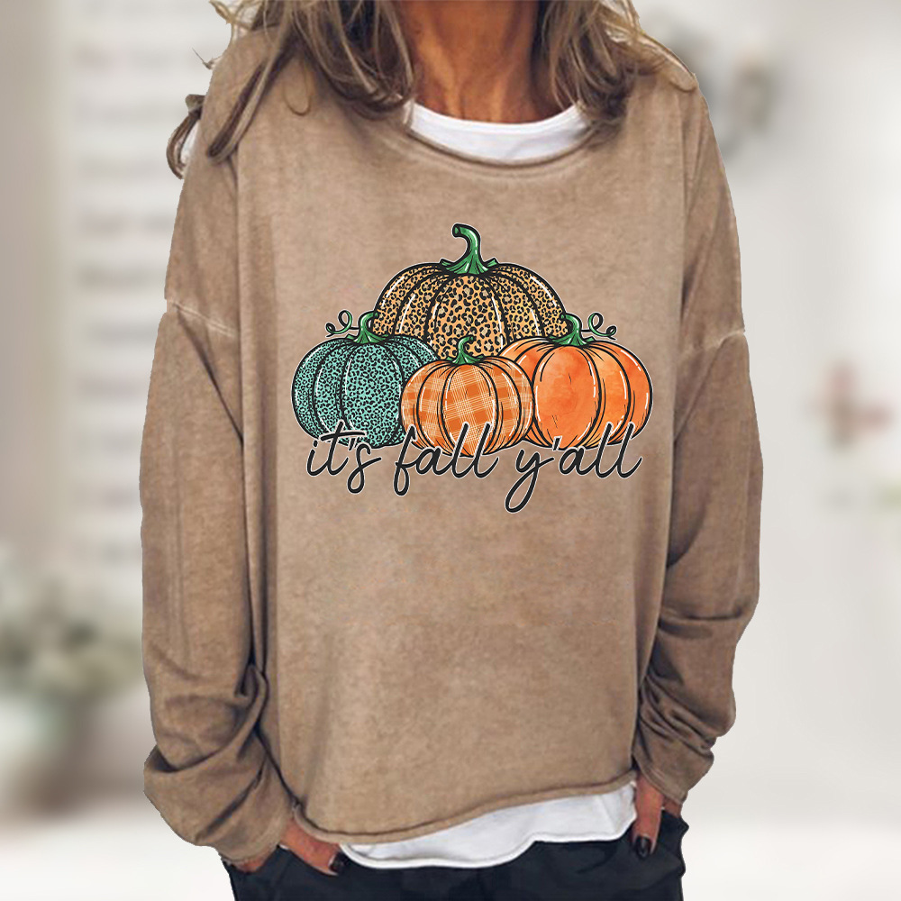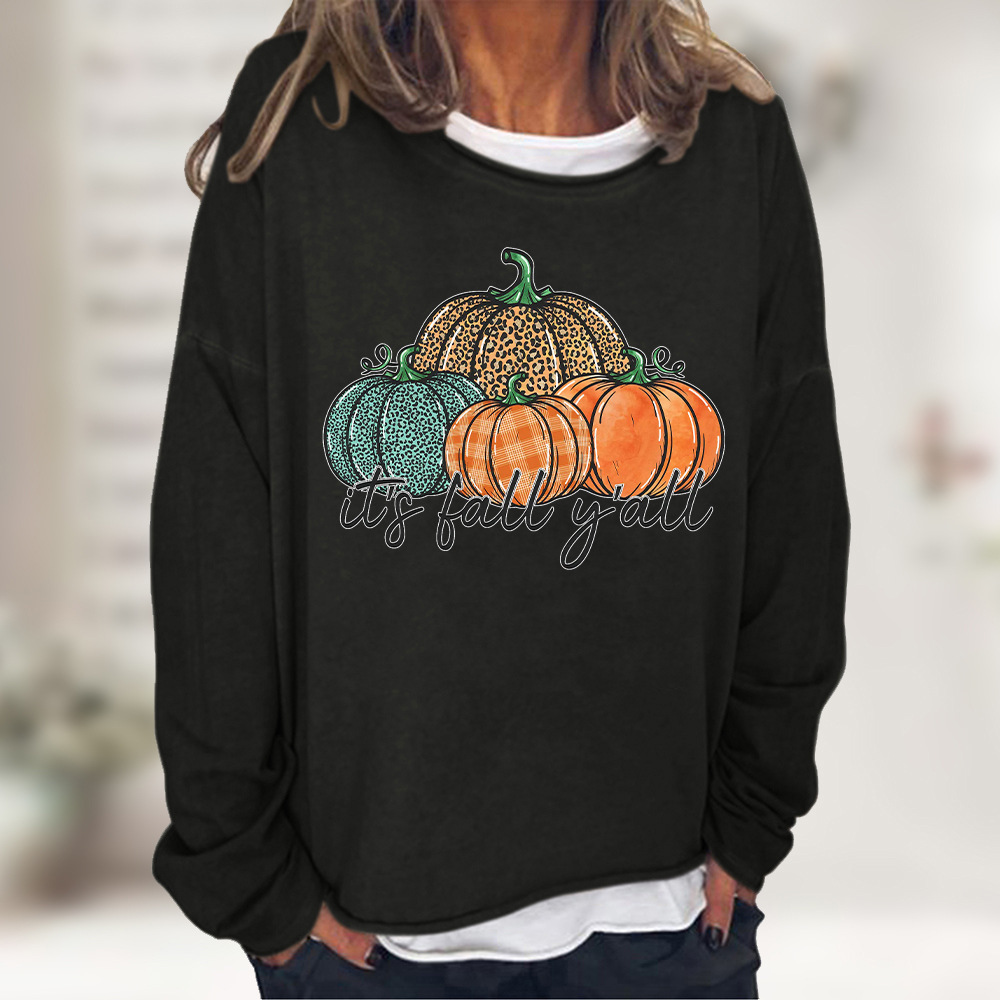 Halloween Leopard Print Pumpkin Print Casual Loose Sweatshirt