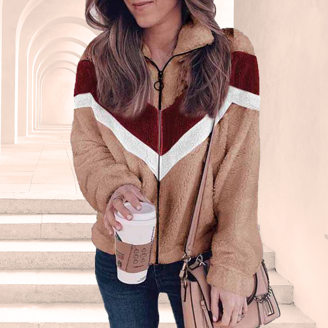 Zipper Cardigan Collision Color Plush Jacket